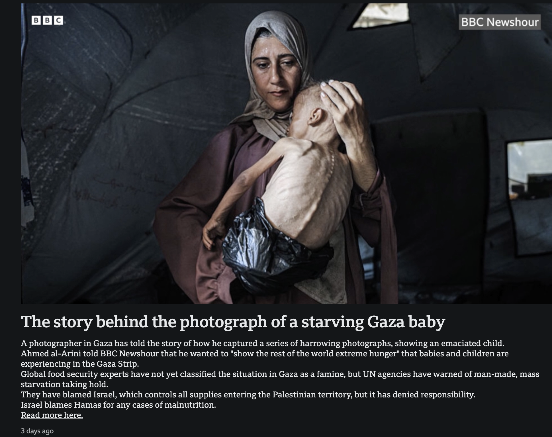 Yet the Western and Arab media are still running the original narrative. Incidentally the other posterboy of Gaza famine you may have seen this week is now shown to be a Pakistani id from a facebook page, also severely ill.