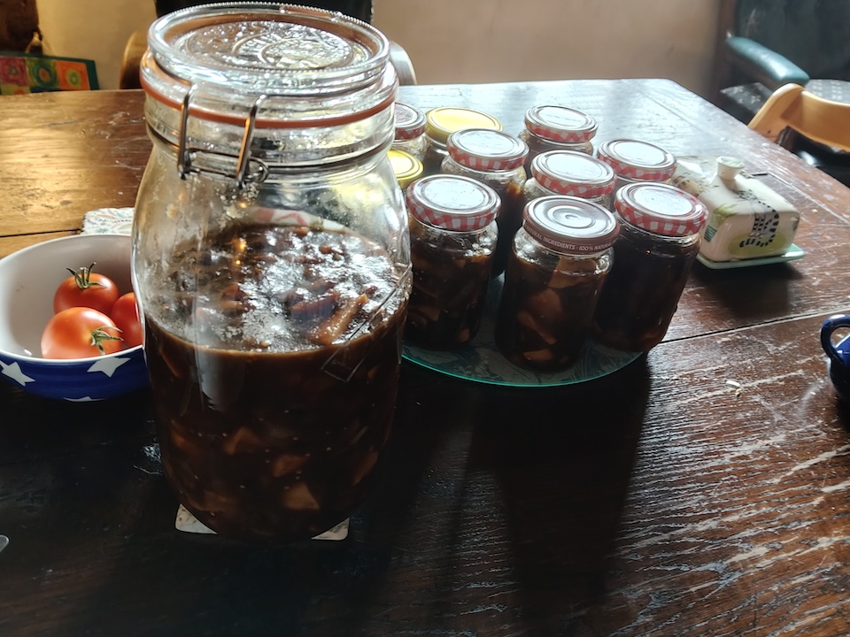 Meanwhile I continue to work my way through the apple glut. Below are the first jars of apple chutney 2025. I plan to run off another batch after Sharestock. The Christmas present production run for family and friends is well underway